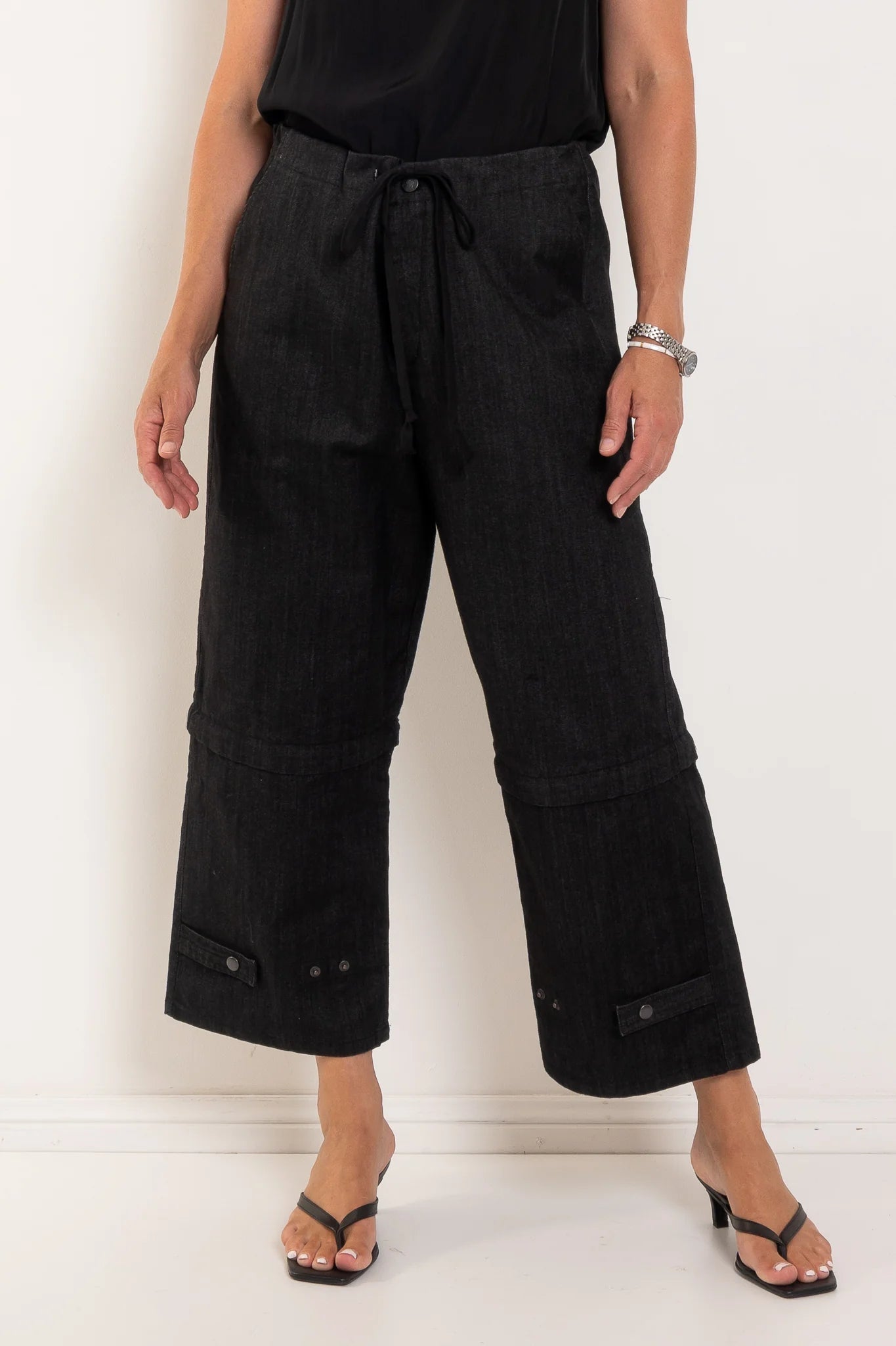 Three press studs at the ankle for adjustable styling