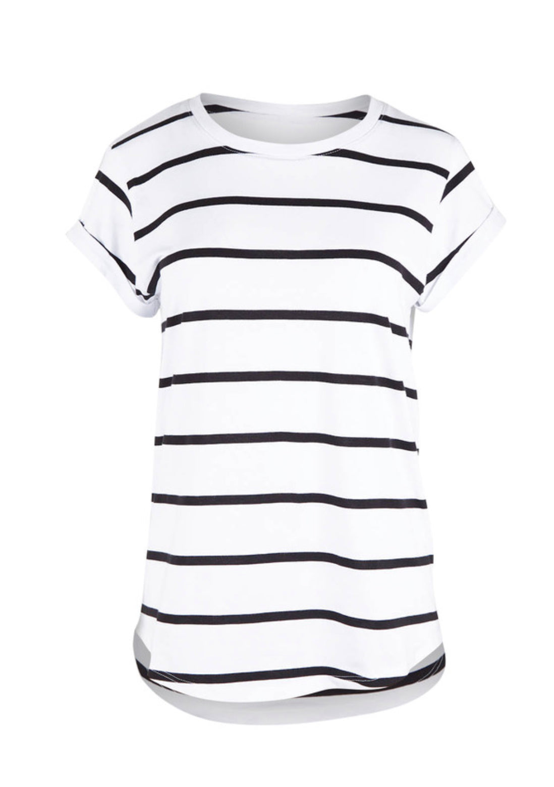 The Elements Manly Stripe Cotton Tee from Foxwood features a round neckline, short sleeves with rolled cuffs, a striped design and curved hem. This top is perfect for any casual occasion, just pair it with some comfy pants, shorts or jeans with sandals or sneakers to complete the look.