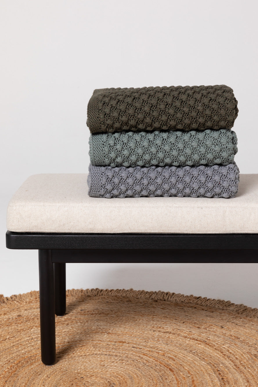 Indus II POPCORN Throw Rug Blanket / Flint Grey