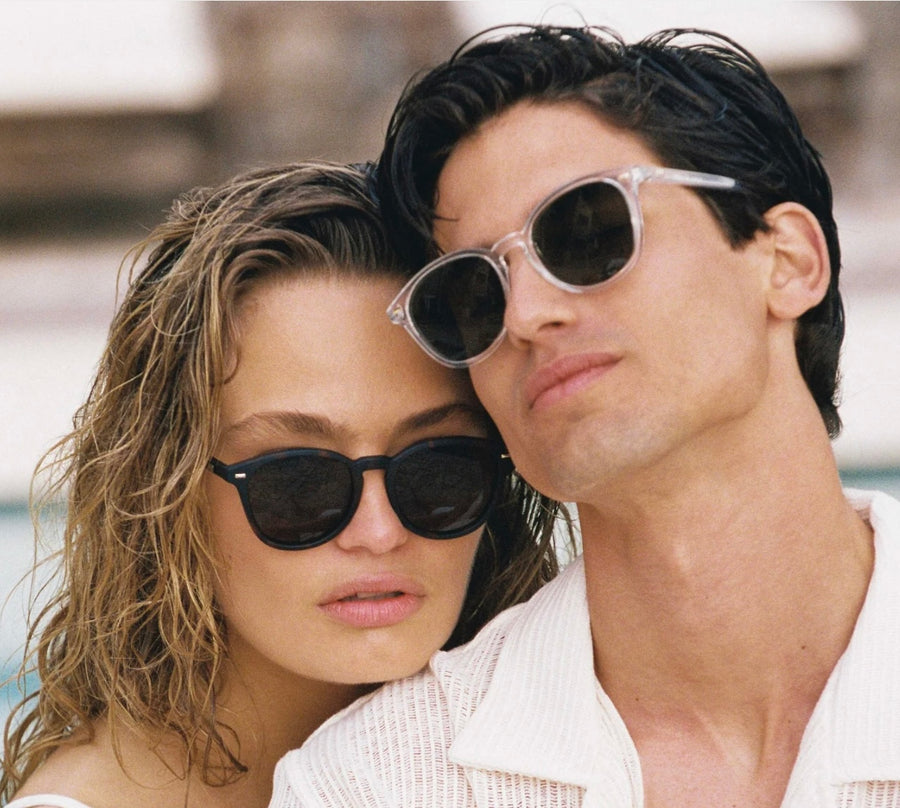 Finished in a vintage translucent clear frame paired with contrast dark lenses