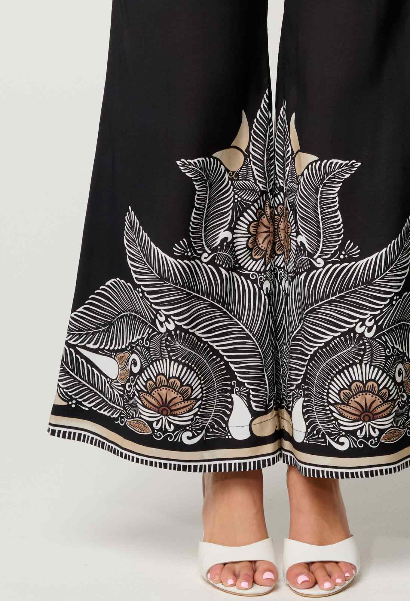 Oncewas II PETITE - Willow Faille Panel Pant - onyx Casablanca print