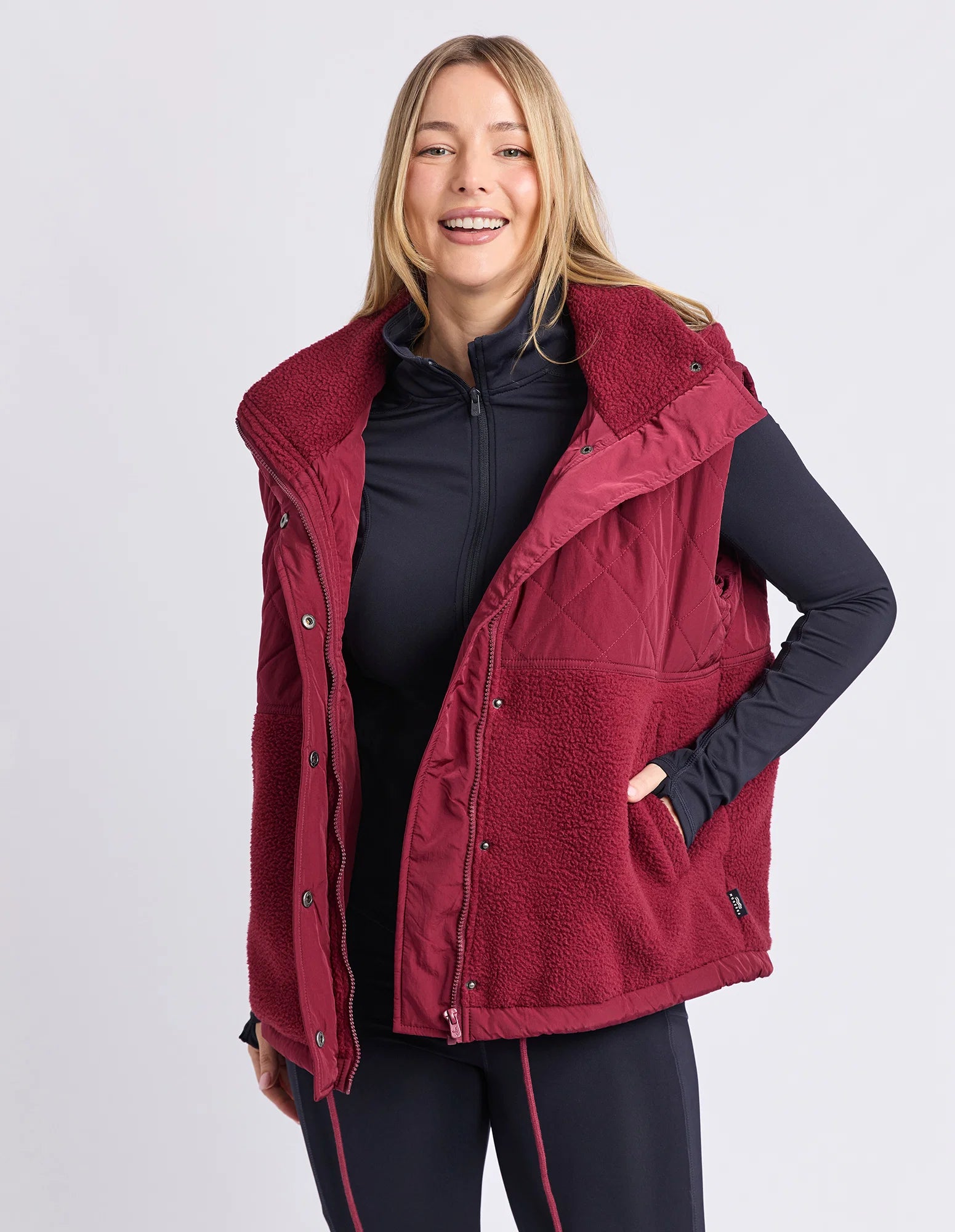 The Elm Freedom Quilted Vest is a trans-seasonal layering essential. Featuring soft sherpa fleece with quilted panels, a relaxed fit and detachable hood, it adds warmth without bulk. Layer over long sleeves or crews for effortless comfort while on the go.