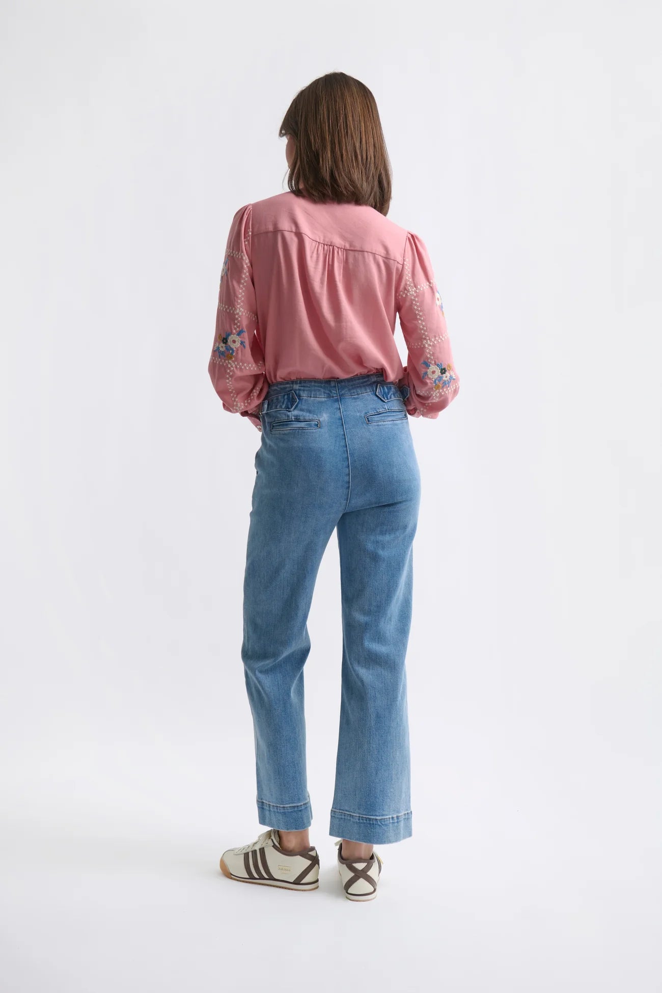 The Sabrina Pant blends classic denim with refined detailing. A flattering high rise and relaxed straight leg are complemented by adjustable side cinch tabs, allowing you to tailor the fit just for you. Finish the look with sneakers or winter boots for understated style.